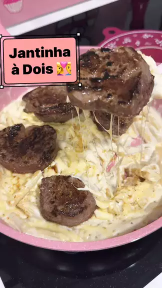 Jantinha à Dois 👩❤️👨 Essa massa/macarrão ao molho branco, queijo e carne grelhada, são a combinação salgada mais perfeita da vida pra mim, chega ser um desaforo de tão bom 🤤
