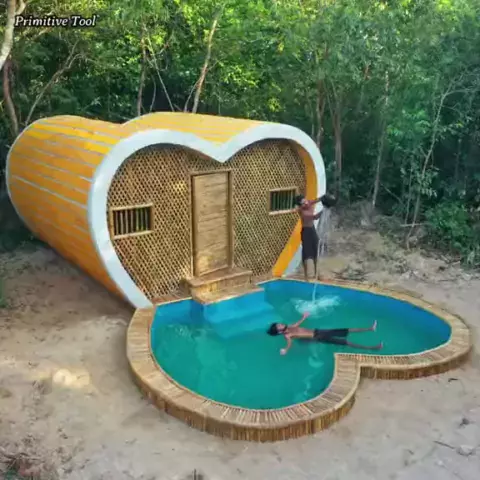 Construindo uma casa amorosa com piscina na floresta #construção #casanafloresta #KwaiBrasil