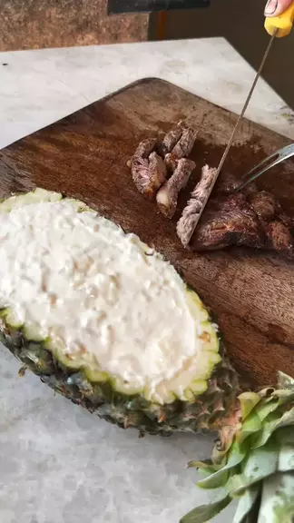 🍍 MOLHO DE ABACAXI PARA CHURRASCO Ingredientes: • 1 abacaxi • 1 colher de açúcar • 1 caixinha de creme de leite • 200g de maionese Modo de preparo: Corte a tampinha do abacaxi, retire a polpa e tire a parte dura do centro. Cozinhe a polpa com o açúcar até engrossar e deixe esfriar. Misture com o creme de leite + maionese. Volte essa mistura pra dentro do abacaxi e leve pra gelar. Fica INCRÍVEL no churrasco! 🍍🔥 #kwai #receitas