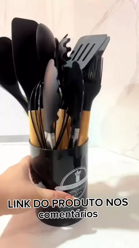 KIT 12 Peças de Utensílios Para Cozinha em Silicone e Bambu #Achadinho #curti #SHOPEE #viraliza #cozinha