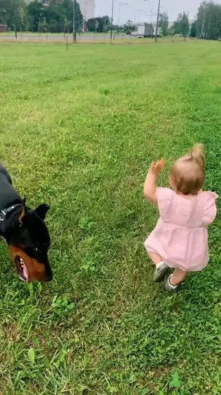 Olha esse bebê brincando com um cachorro considerado “perigoso” mas muito dócil e treinado! #bebesfofos #bebecompet #fofo #culturademae #cachorro