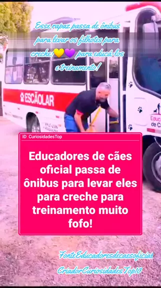 Educador de cães oficial passa de ônibus pegando os Dogs para treinamento e educação na creche! Muito fofo #Educacao