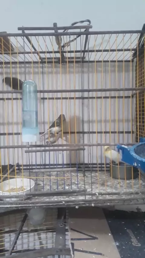 canaria femea de canario belga 05 com 2 filhotes canario Machado