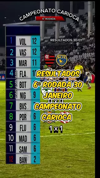 Resultados da 6⁰ Rodada de 30 de Janeiro, pelo Campeonato Carioca. Classificação Atualizada. #Carioca #Rodada6 #futanalise #vocesabia #20250131