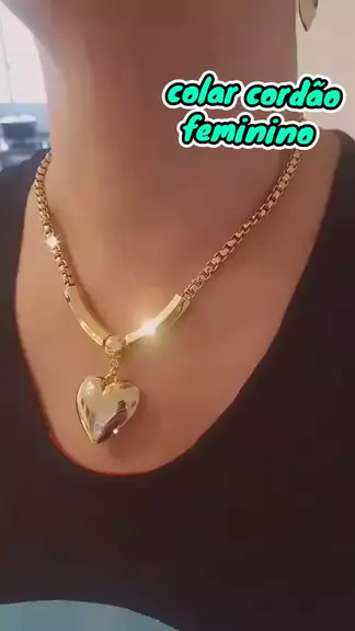 Colar cordão Feminino com coração liso - Elo português 45cm 6mm