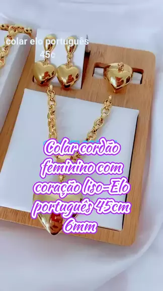 Colar cordão feminino com coração liso-Elo português 45cm 6mm #SuperMundial #mesdoorgulho #Shop