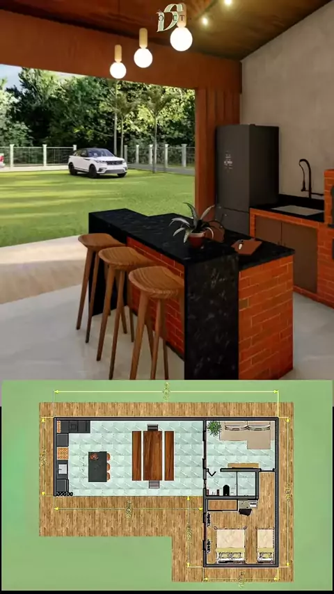 Projeto P058 - Edícula com 1 Quarto Este e vários outros projetos já disponível em nosso site. WWW.DSPROJETA.COM.BR #areagourmet #edicula #casadecampo #areadefesta #rancho@Daniele Souza Arq.