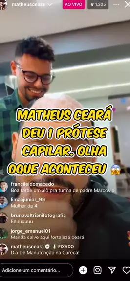 O Fábio participou da Live do @MATHEUS CEÁRA859(O150000130758209) e ganhou uma prótese capilar da Capilary clínic . O resultado foi incrível e ao se deparar com o resultado ele se emocionou. #kwai #comedy #viralvideos #video #protesecapilar