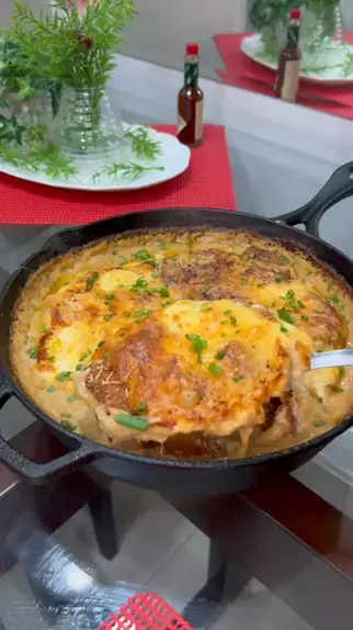 Já comeram parmegiana assim?? 😱 Com Molho de Queijos e Batata Crocante 😍 . Quem não tiver airfryer, depois de cozinhar a batata e temperar, dá pra levar ao forno a 220graus ou fritar em óleo por imersão. 🙌🏽 . Vocês gostam de receitas com frango? . #receitas #receita #parmegiana #frango