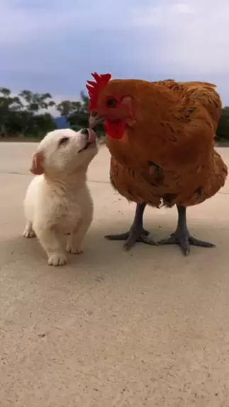 A galinha virou a nova mamãe do cachorrinho! #Cartoon #animais