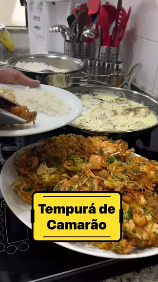 Tempurá de Camarão 500 Gramas Camarão; 02 Xícaras (chá) Brócolis; 02 Xícaras (chá) Couve-flor; 02 Xícaras (chá) Abobrinha; 02 Xícaras (chá) Cenoura; 01 Cebola; 200 ML Água Com Gás Gelada; 1/2 Xícara (chá) Amido de Milho; 1/2 Xícara (chá) Farinha de Trigo; 03 Ovos; 01 Colher (café) Pimenta do Reino; 01 Colher (chá) Fermento em Pó; Sal a Gosto; 01 Maço Cheiro Verde; #receitas #amo #amocozinhar #deliciasdaeleni