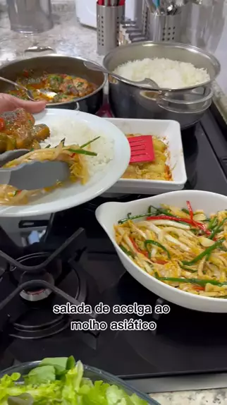 Salada de Acelga ao Molho Asiático 01 Acelga; 01 Maço Cebolinha; 02 Pimentas Dedo de Moça Sem a Semente; 04 Dentes de Alho em Lâminas; 04 Colheres (sopa) Óleo; 02 Colheres (sopa) Shoyu; 02 Colheres (sopa) Mel; 01 Colher (sopa) Molho de Ostra; 1/2 Colher (café) Pimenta Calabresa; 01 Colher (café) Páprica Defumada; Sal a Gosto; #receitas #amo #amocozinhar #deliciasdaeleni