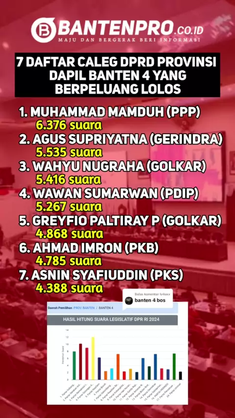 Membalas @lv4uxx Berikut itulah beberapa daftar Caleg DPRD provinsi Banten, dapil Banten 4 yang berpeluang lolos . . Hasil perhitungan suara tersebut masih bersifat sementara, dan akan terus diperbarui kembali oleh KPU. Mengingat, perhitungan suara masih berlangsung hingga saat ini.#provinsibanten#pemilu2024#pileg2024#banten#dprdbanten#infoserang#infobanten