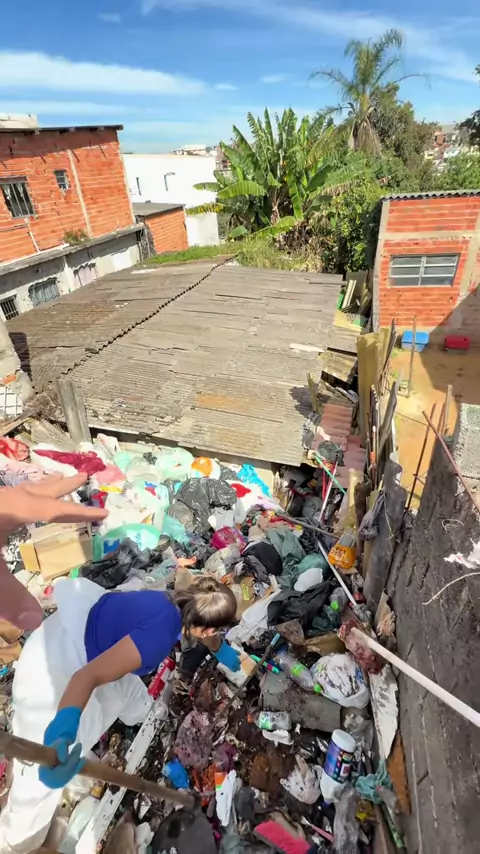 Parte 2 Já começou o processo da retirada de lixo da casa da senhora de 71 anos que acumulou lixo até o telhado de sua casa… tá sendo um caso bem desafiador e o pior até agora #diariasdogui #acumuladorescompulsivos #limpeza #faxina #