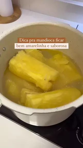 o segredo pra mandioca ficar desmanchando A cada 1kg de mandioca, coloque uma colher de sopa beeem cheia, de manteiga ou margarina e cozinhe até ela ficar macia. 7.921 Lembrando que usei a mandioca do tipo amarela, mas já cozinhei ela sem a margarina e não ficou amarelinha assim não Então, o segredo pra deixar ela saborosa e mais amarela, é a margarina mesmo.