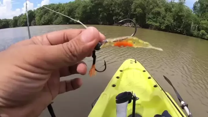 Na dúvida, vai de camarão artificial na pescaria de Robalo. #pescaria #robalo #pesca #caiaque