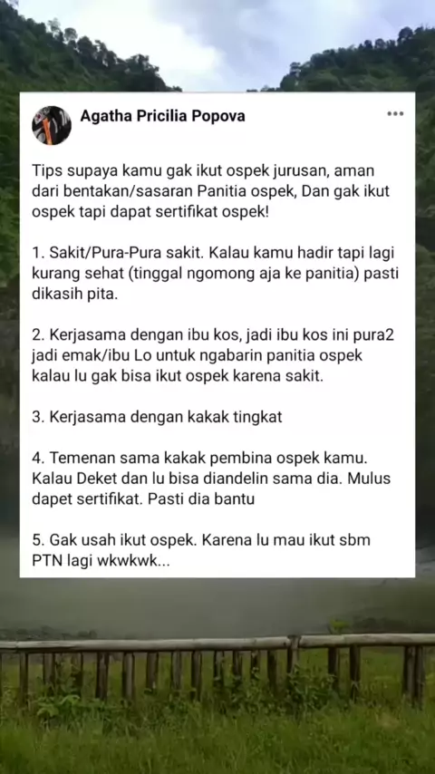 Tips dari kak Agatha supaya kamu aman dan gak ikut ospek jurusan tapi dapat sertifikat ospeknya wkwkw... . . .#simakui#simakui2022#simakui2021#simakui2020#simakui2021#fkui#anakui#kampusui#universitasindonesia#ftui#masukui#uidepok#mahasiswa#mahasiswabergerak#mahasiswaonline#mahasiswaonline#mahasiswaindonesia#mahasiswaakhir#mahasiswabaru#mahasiswajogja#mahasiswajakarta#mahasiswamalang#mahasiswamakassar#mahasiswamagang#kampus#kampuslife#kampusmerdeka#kampusimpian#kampusparenting#kampusjogja#kampus...
