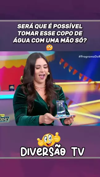 Será que é possível tomar esse copo de água com uma mão só? 🤔 #programadetv #programadoratinho #entretenimento #desafio #divertido
