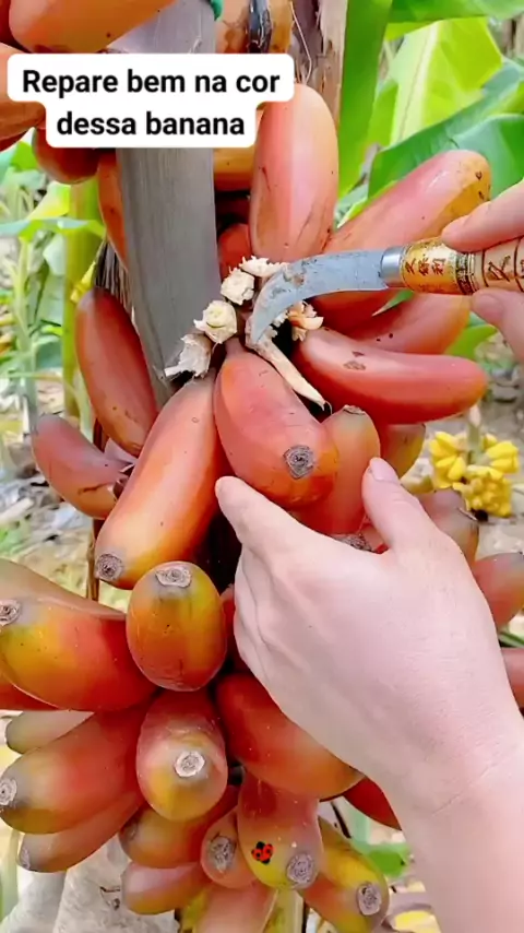 Eu achei a cor dessa banana bem diferente. A casca avermelhada, a polpa de um amarelo intenso. O que vc achou? #banana #Desafiepara10kVis #frutas #fruits #frutasdomundo