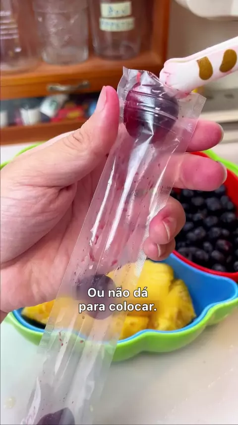 Picolé de frutas self-made, estou ansioso para o quão delicioso será quando for congelado. # sorvete self-made # picolé self-made # como comer frutas