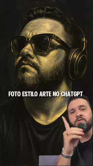 Como transformar sua foto em uma arte dentro do #chatgpt? Prompt: Hiper realist 8K HDR, Oil painting depicting traces of the image update, black and white image with gold plated details, I wearing designer sunglasses, with my head tilted upwards and headphones. Size 4:5 ratio Me acompanhe para ver mais! #inteligenciaartificial #ia #arte #foto