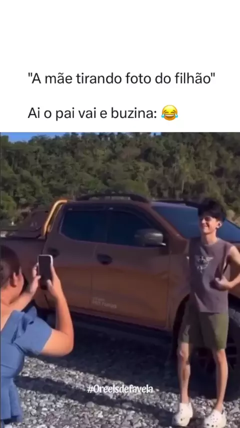 a mãe tirando foto do filhão aí o.pai buzina kkkk