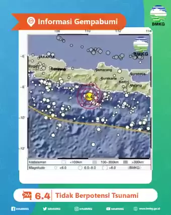 Info Gempa Mag:6.4, 30-Jun-23 19:57:43 WIB, Lok:8.63 LS,110.08 BT (86 km BaratDaya BANTUL-DIY), Kedlmn:25 Km ::BMKG #BMKG #infoBMKG #gempa More