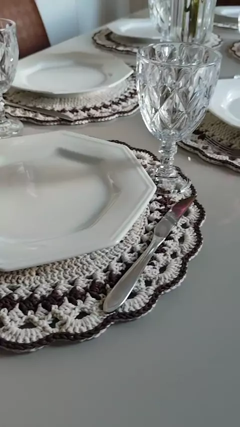 jogo de sousplat de crochê. #sousplatdecrochê #jogodesousplat #efigeniaartesanatos #mesaposta #saladejantar