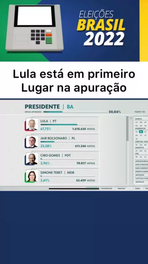 Lula está em primeiro na apuração #noticias #politica #Eleições2022 #lula #BOLSONARO