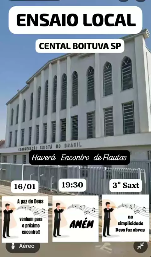 #APazdeDeus #ccb💙❤ *`16/01/2026` *🔥*CONVITE ESPECIAL*🔥* 🎶🎶 *PRIMEIRO ENCONTRO DOS FLAUTISTAS DE 2026* 🎶🎶 📌 *NO 3° SEXTA FEIRA* - 16/01/2026 DE JANEIRO 🏛 *ENSAIO LOCAL* *CENTRAL* 🇧🇷 *BOITUVA SP* *⌚Horário: às 19:30hrs* (Noite) 📌https://maps.app.goo.gl/xv6jQHLoAF4E5EJL6 Deus prepara vamos encontrar amigos flautistas 👔 *aguardamos os FLAUTISTAS* *CONFIRMADOS* 🪈🎶 *1 Valdemir* ( JD São Paulo Boituva sp) 🪈🎶 *2 Eduardo* (PQ 1SÃ