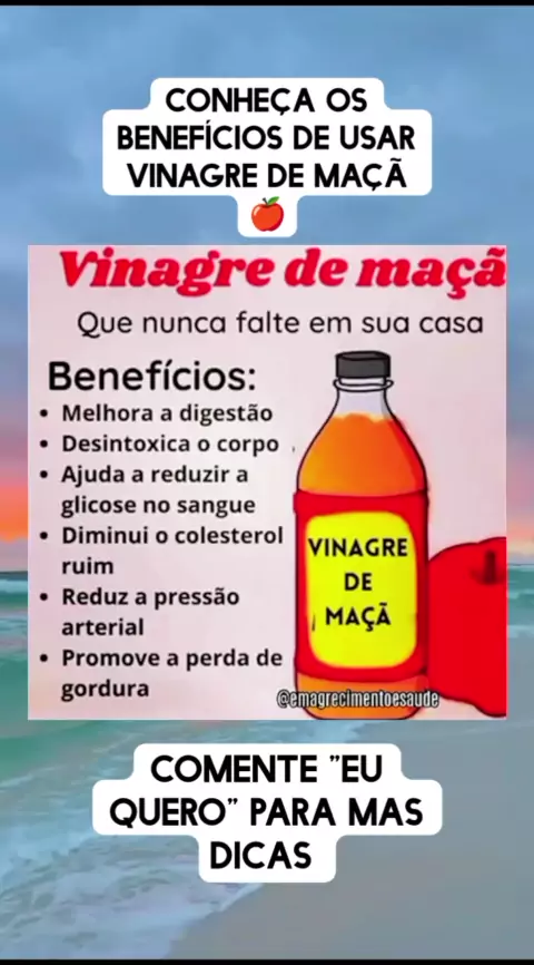 Conheça os benefícios de usar vinagre de maçã. 🍎 #Saúde #emagrecimento #emagrecer #perderpeso #vinagredemaçã