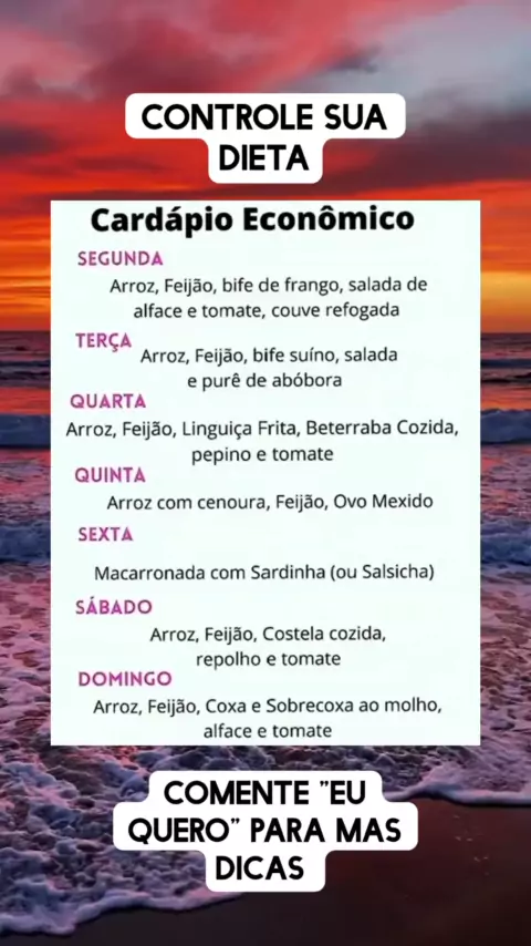 Cardápio econômico. #Saúde #emagrecimento #emagrecer #dieta #dietasaudavel