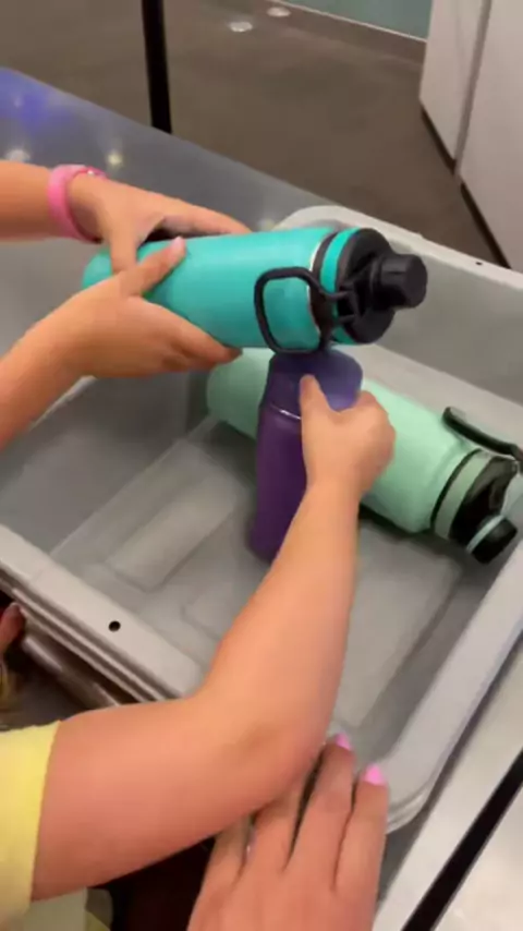 One of the greatest hacks when flying!!! ✈️ Just make sure there isn’t any liquid in the bottom!!#travelhack#flyingwithkids#travelwithkids#familytravel