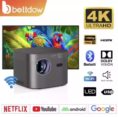 BETTDOW Nativo 1080p 4k projetor 5G wifi bluetooth filme ao ar livre android projetor 200 "display 13000lM projetor de vídeo de cinema em casa