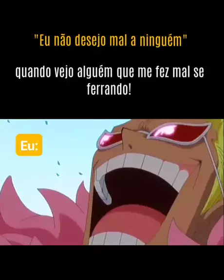 Não desejo, mas não sou perfeito a ponto de não dar risada! #Doflamingo #onepiece #meme #satisfação