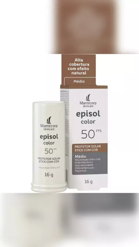🌞 Proteção + Beleza em um só produto! Episol Color FPS 50 em stick com cor média: alta cobertura, efeito natural e toque seco. ✔️ Protege contra UVA e UVB ✔️ Uniformiza a pele ✔️ Com ácido hialurônico e ação antioxidante Praticidade para o dia a dia! 💄☀️ 📦 16g | Pronto para levar na bolsa