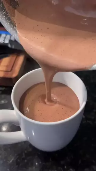 Chocolate quente cremoso, saudável e proteico 🍫🫖☕️ 1 xíc de leite desnatado 1 c.s cacau em pó 1 scoop Whey de chocolate da DUX 1 colher de café de tapioca #chocolatequente #SuperMundial #festakwai #Cremoso #saudavel
