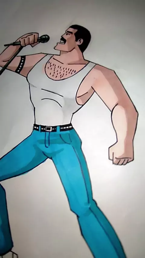 Desenho Freddy Mercury no estilo de Bruce Timm #freddymercury #rock #drawing #musica #art More