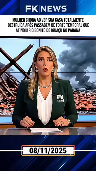 Mulher chora ao ver sua casa totalmente destruída após passagem de forte temporal que atingiu Rio Bonito do Iguaçu no Paraná . #ultimasnoticias #RioBonitodoIguacu #kwaitop #kwainoticia #kwaiatividade
