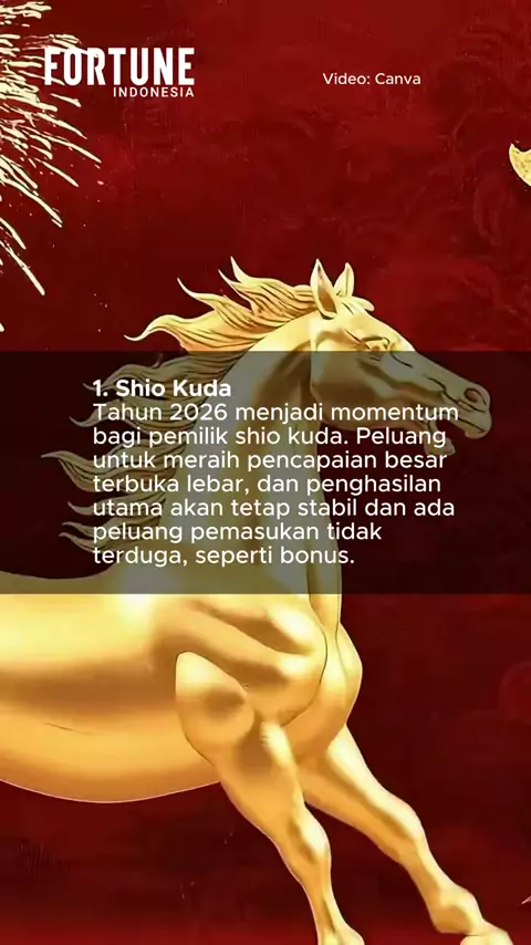 Tahun 2026 dalam kalender Tionghoa dikenal sebagai Tahun Kuda Api, yang melambangkan kebebasan, kemandirian, dan momentum kemajuan. Beberapa shio juga diprediksi memiliki peruntungan yang baik sepanjang tahun 2026. Lantas, siapa saja shio yang beruntung tahun 2026? Simak penjelasannya di sini. Baca berita ini selengkapnya di linkin.bio/fortune_idn (Link di bio)#ShioKudaApi#TahunBaruImlek#Imlek##