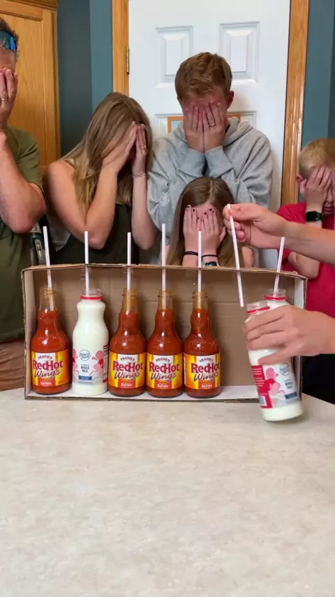Hot Sauce or Milk? Don’t drink the wrong one 🤣#game#partygame#challenge#hotsauce#familytime