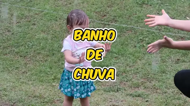 Vi toma seu primeiro banho de chuva com a mamãe 😃🌧