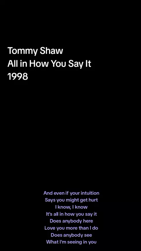 All in How You Say It" is a song by Tommy Shaw, released on his 1998 solo album 7 Deadly Zens. The song explores themes of communication, intuition, and learning lessons in relationships, featuring lyrics about finding someone special despite potential heartbreak. It is a melodic rock track produced by Shaw and Eddie Ashworth. Tommy Roland Shaw (born September 11, 1953) is an American musician best known for his tenure in the rock band Styx as co-lead vocalist. In between his stints with Styx, ...