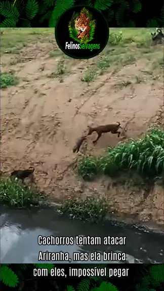 Cachorros tentam atacar Ariranha, mas ela brinca com eles, impossível pegar #FelinosSelvagens #viraliza #animais #Natureza #CrescerNaFamília