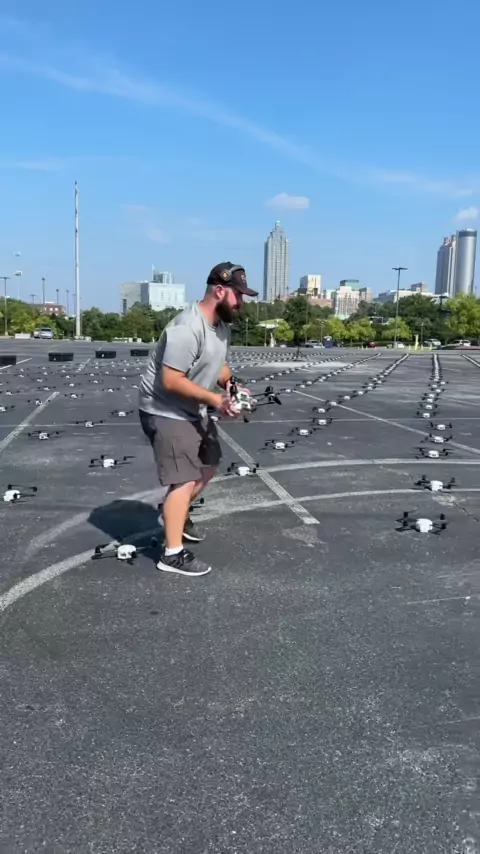 Drone Show BTS in Atlanta 🤩#droneshow#dronelightshow#dronelight#bts#dronecompany#dronecommunity#dronebusiness#droneswarm#worththewait#viral##nightsky#lightshow#drones#viralvideo#viral#behindthescenes#atlanta#onewheel#cooljob