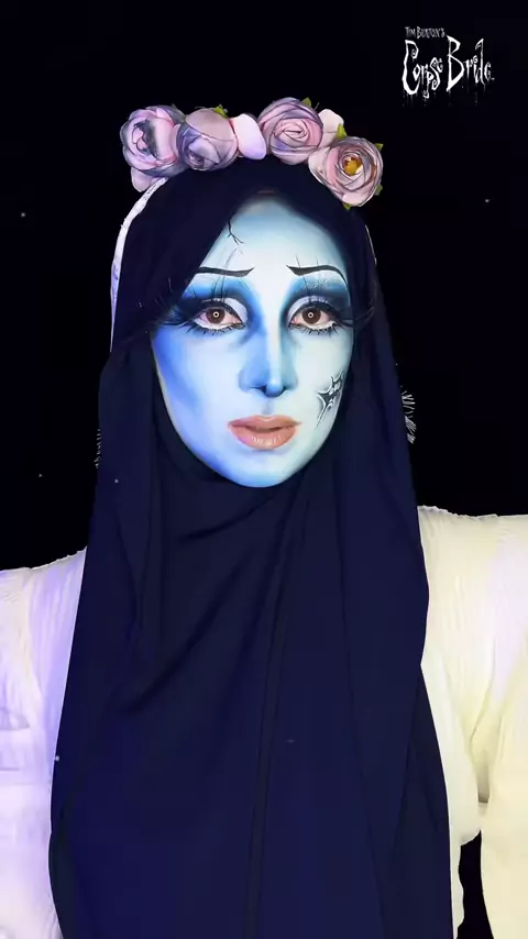 corpse bride makeup collab with @assia.mua 🩵🤎 #corpsebride #corpsebridecosplay #emilycorpsesbride