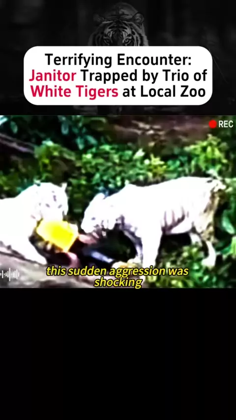 Encontro aterrorizante: Zelador preso por trio de tigres brancos no zoológico local # # # animalsof # tiger # zoo # animals