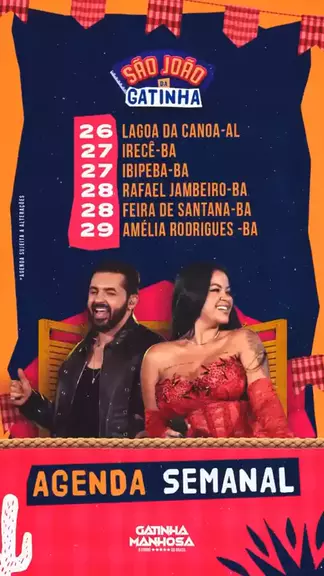 🗓️ Agenda São João 2025 Da Gatinha Manhosa #AgendaJunho2025 #GatinhaManhosa #SãoJoãoDaGatinha #SuperMundial