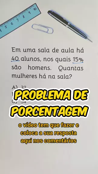 Porcentagem. Em uma sala de aula há 40 alunos, nos quais 15% são homens. Quantas mulheres há na sala? #matematica #AULA #Escola #aprender #porcentagem