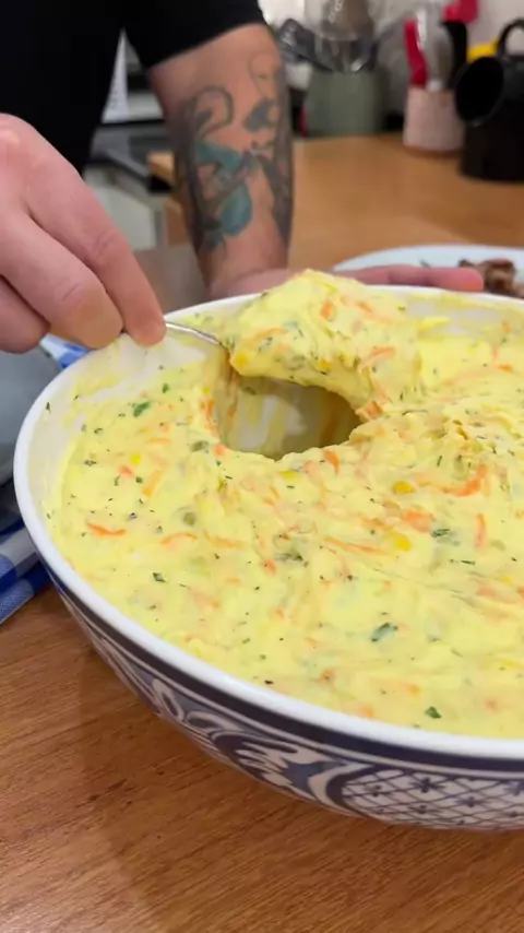 Maionese ou salada de batata? 1,5 kg de batata 1 cebola pequena 1 cenoura grande ralada 1 lata de milho 1 lata de ervilha 500 gramas de maionese 1 limão grande Sal, pimenta do reino, salsinha e azeite a gosto. Aqui em casa essa maionese é obrigatória! Eu tenho certeza que vai fazer o maior sucesso aí na sua casa! Faz e me conta. #maionese #batata